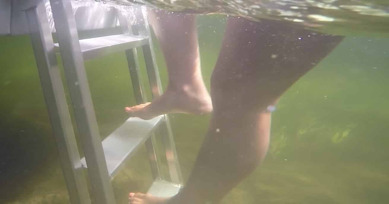 • Swing-up: Dock ladder bolts to dock and can swing up on deck when not in use
