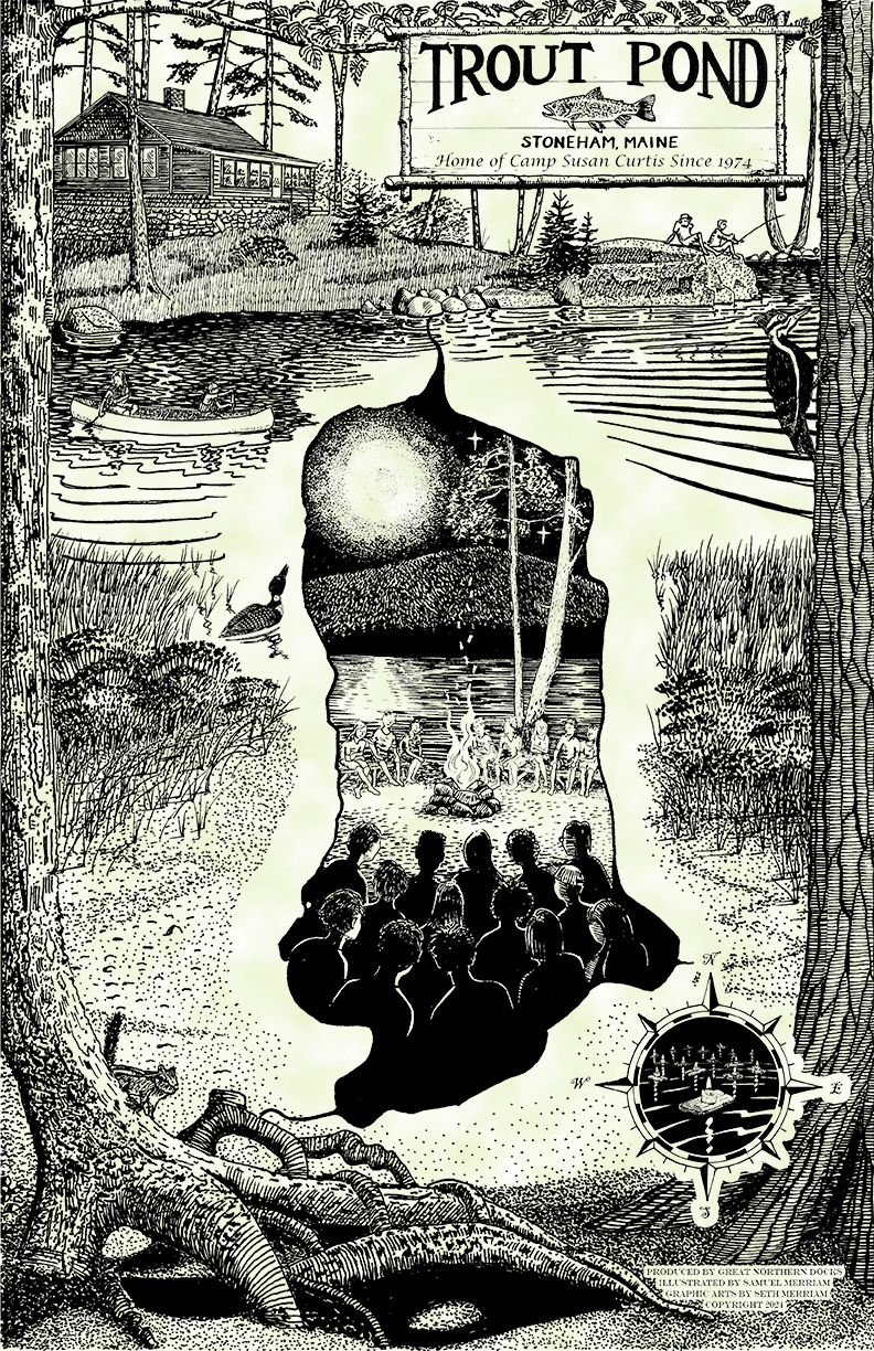 Product: Artistic map of Trout Pond in Maine