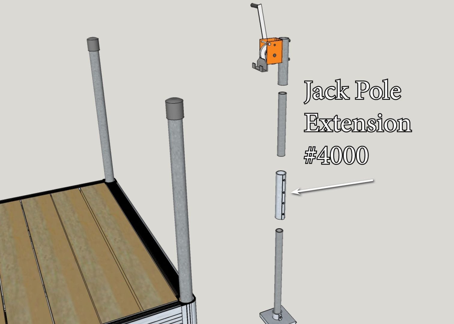 • Function: Allows the length of a jack pipe to be adjusted when installing a dock on legs with a winch